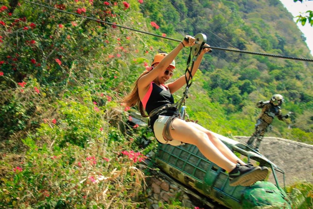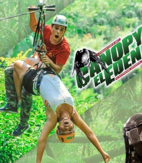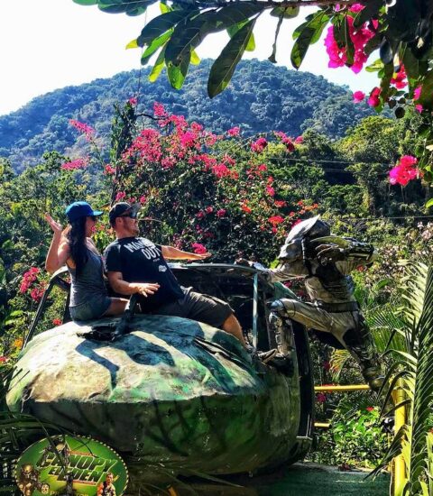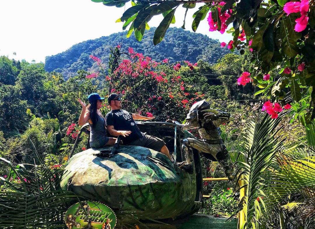 Ven a volar a través de los senderos y cascadas de la película Depredador a lo largo de más de tres millas en doce tirolesas largas y altas diferentes creadas para tu disfrute.